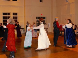 The Huntsville English Country Dance is a recreational group that meets every Monday night. (Some exceptions - email huntsvilleecdance@gmail.com or call Harriet Grable 256-539-5505 or 256-361-5041 for particulars.) We invite you to join us, dancing traditional English Country dances dating from the mid-17th century through dances in the English Country tradition, being written currently. Each dance has its own tune, and our dance enjoys live music played by The Fine Companions.